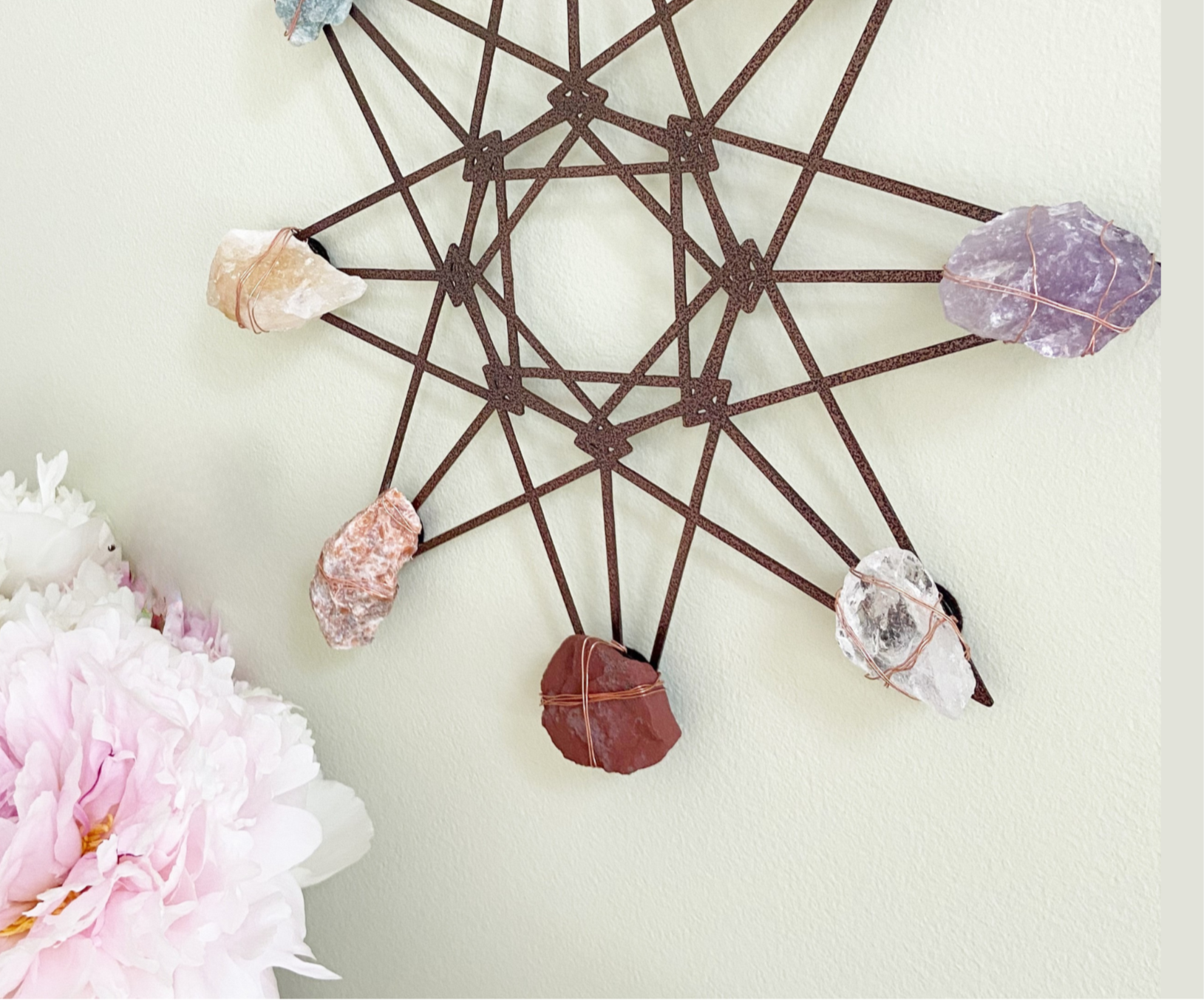 Sacred Geometry Wall Art - Wire-wrapped Raw Chakra Crystals - One of a Kind Crystal Grid
