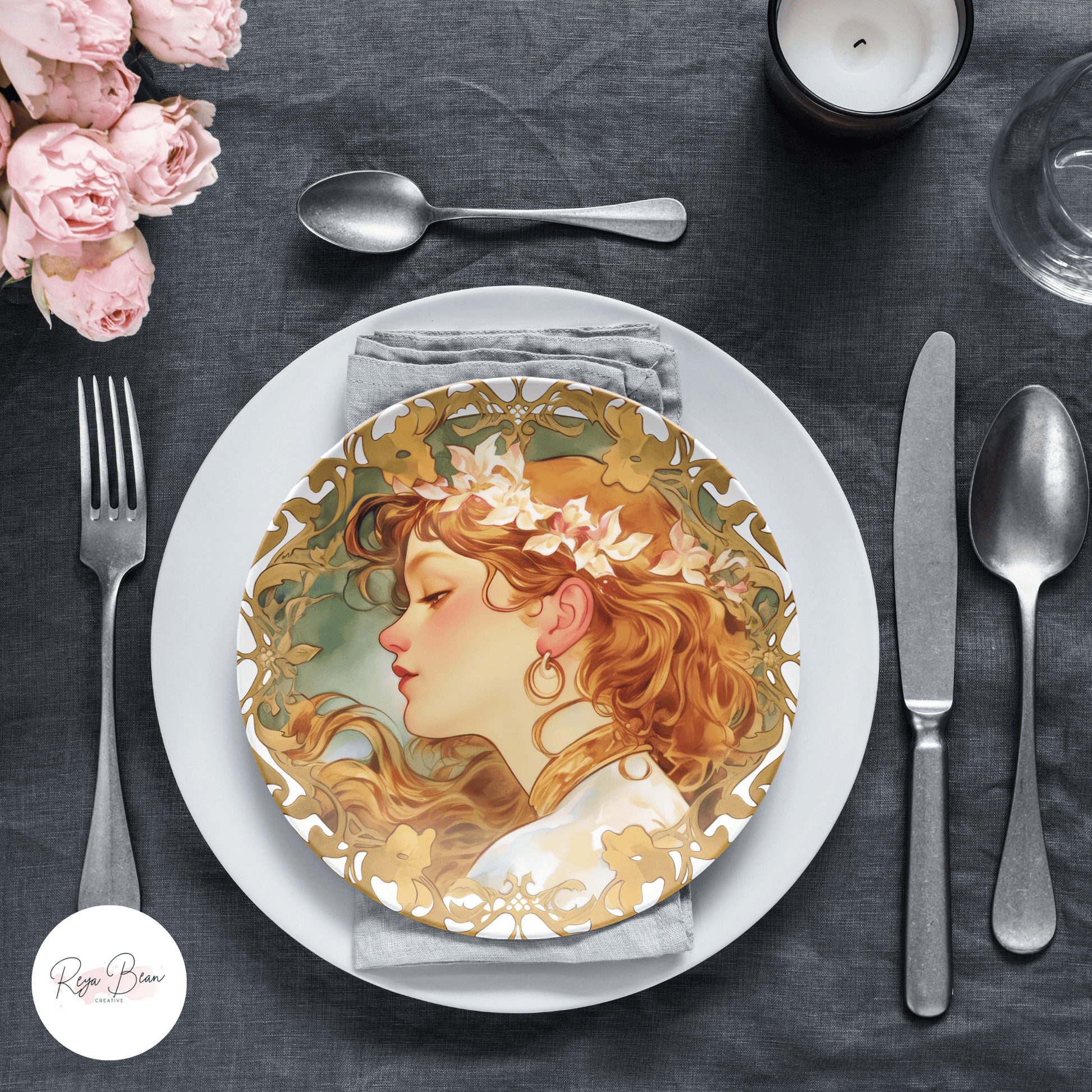 Art Noveau Housewarming Party Plates Gift Ethereal Women Plate Set, Unique Art Deco Hostess Fun Gift Whimsical Dinnerware, 10" Unbreakable