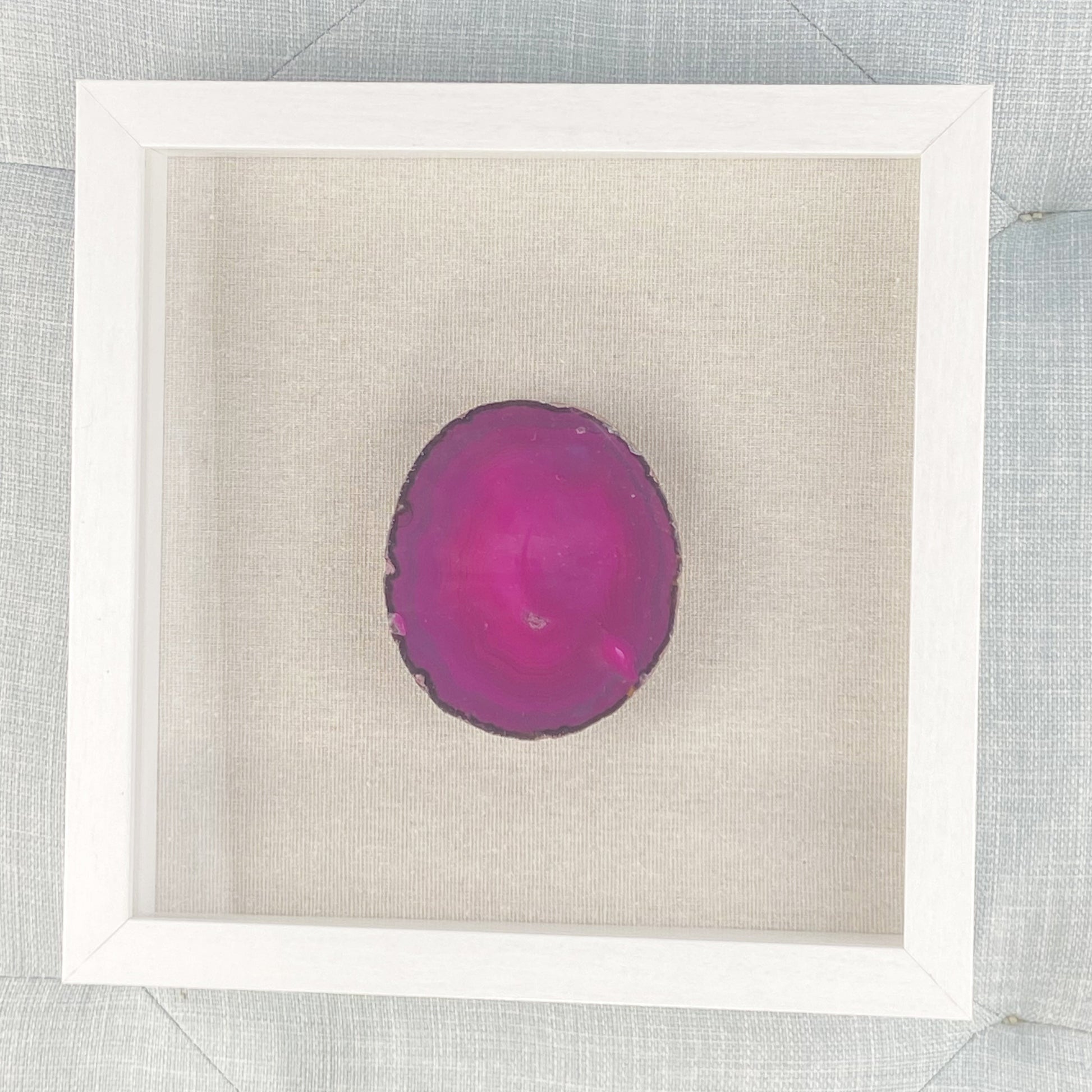 Framed Thick Pink Brazilian Agate- White Frame 9 x 9"