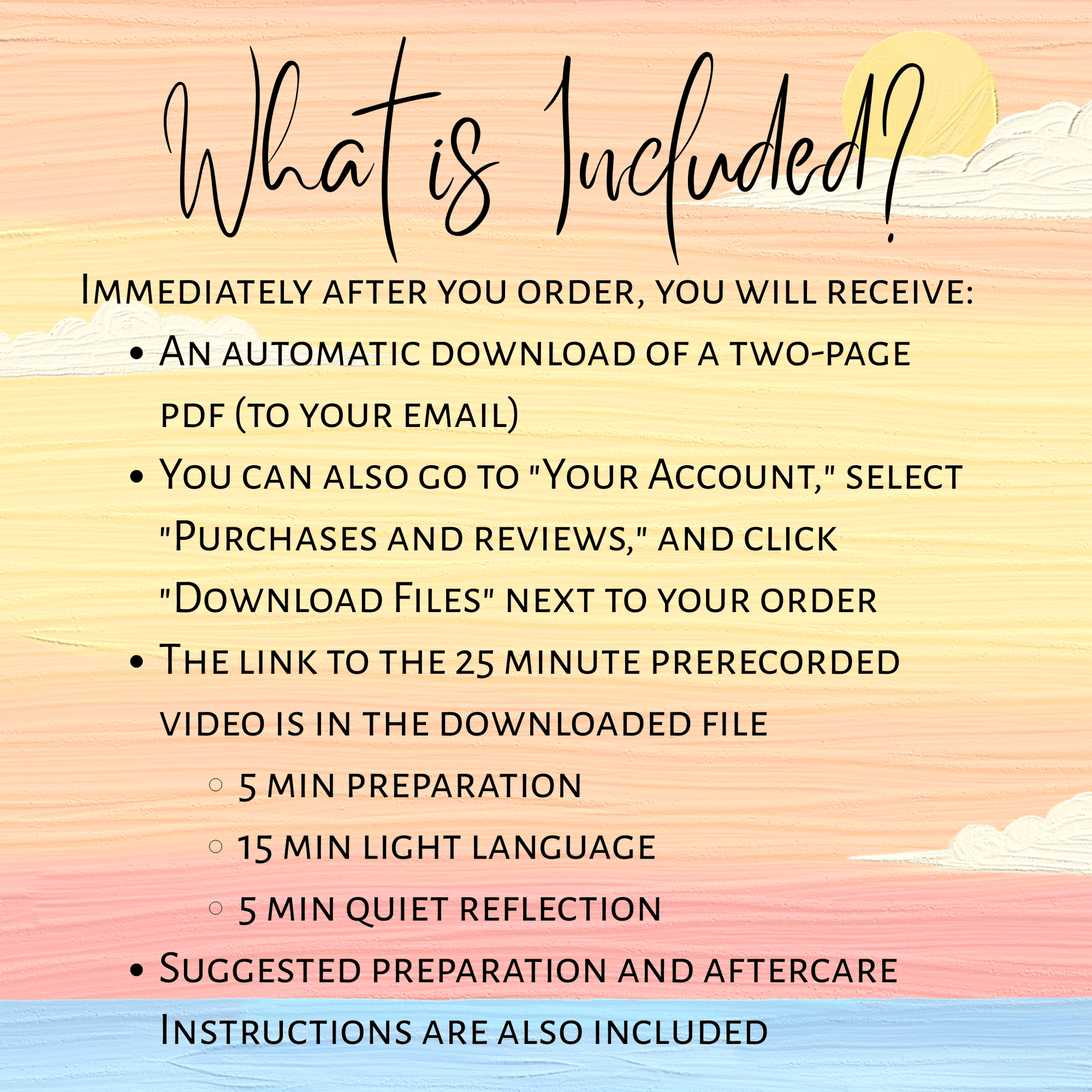 - Instructions: I’ve included simple tips on how to prepare your space and what to do after the session to get the most out of it.