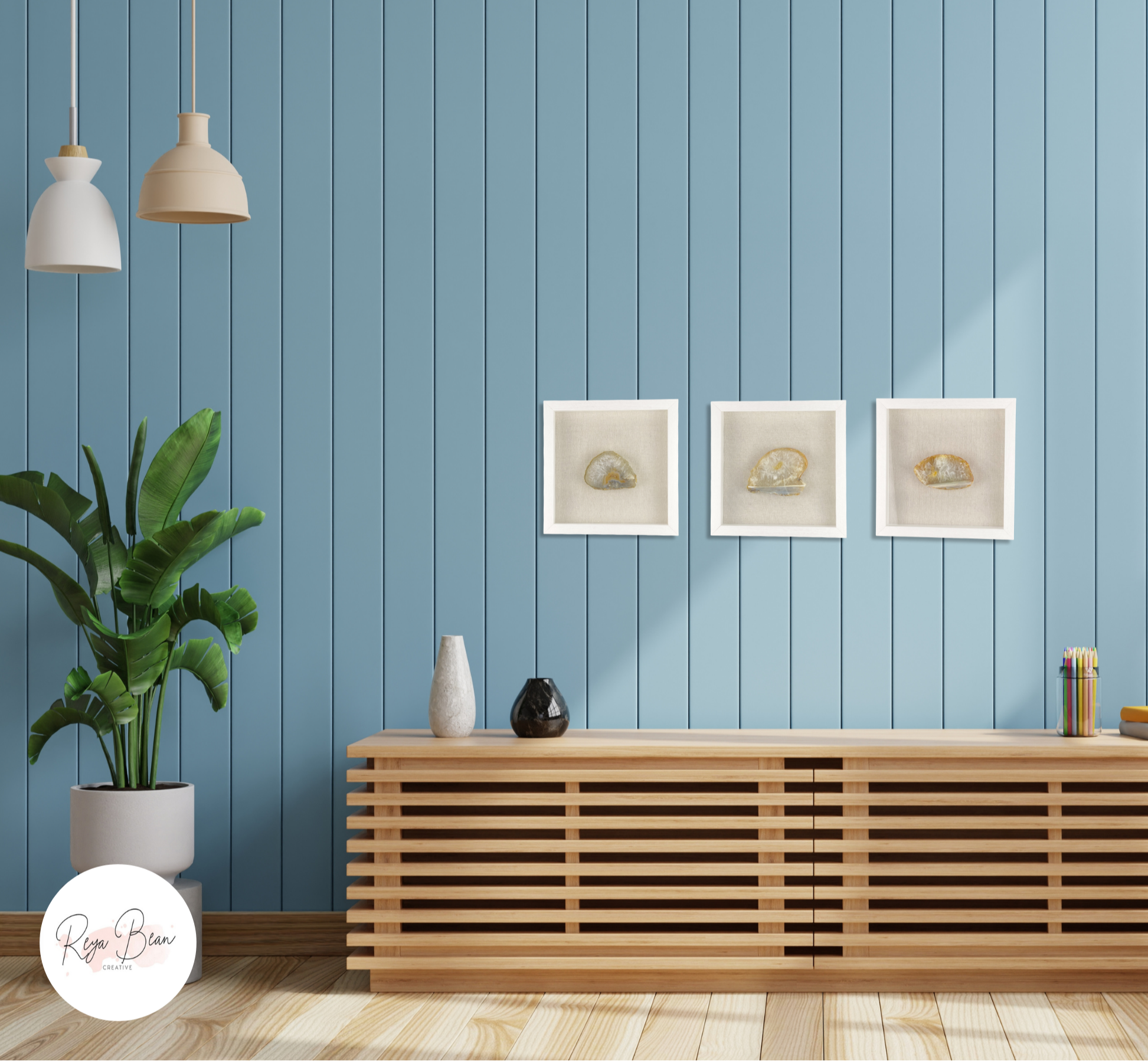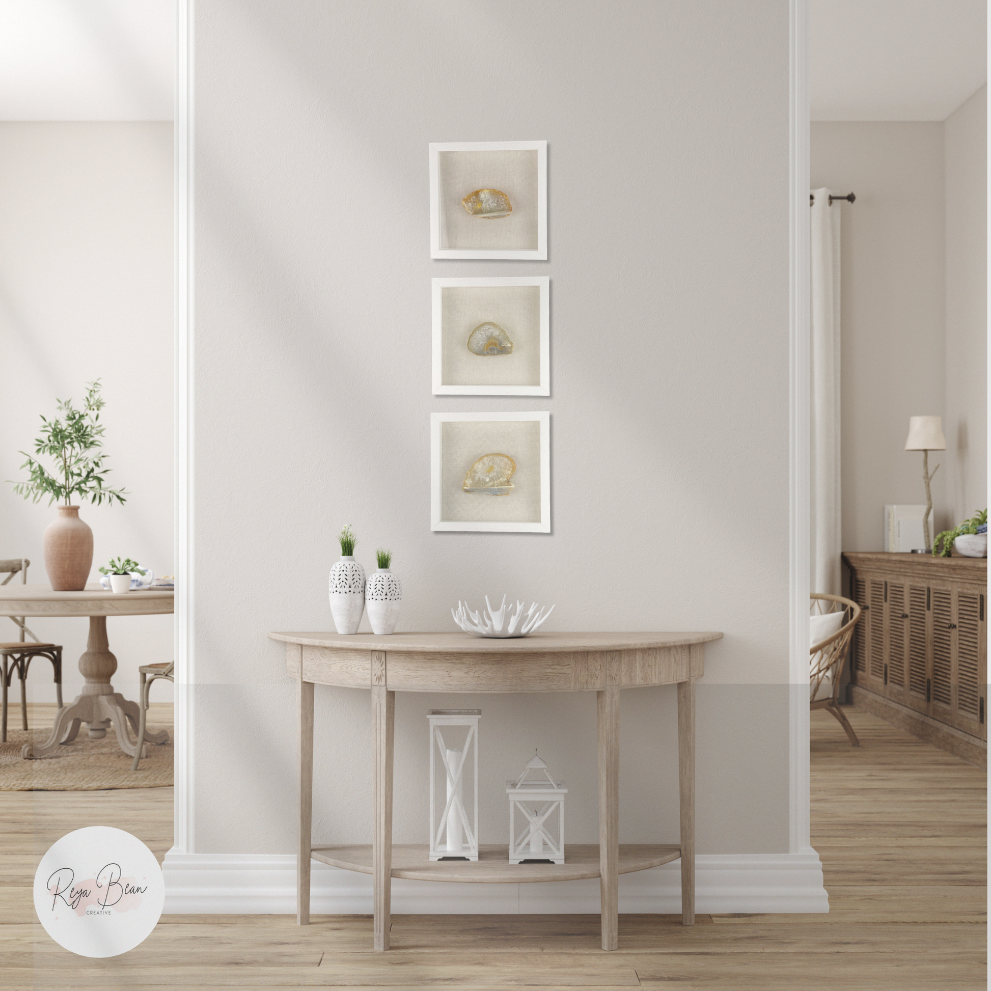 ✨ Arrange these three framed agates however you choose, each thick yellow druzy agate slice, is known for its joyful, uplifting energy and sparkling crystalline texture.