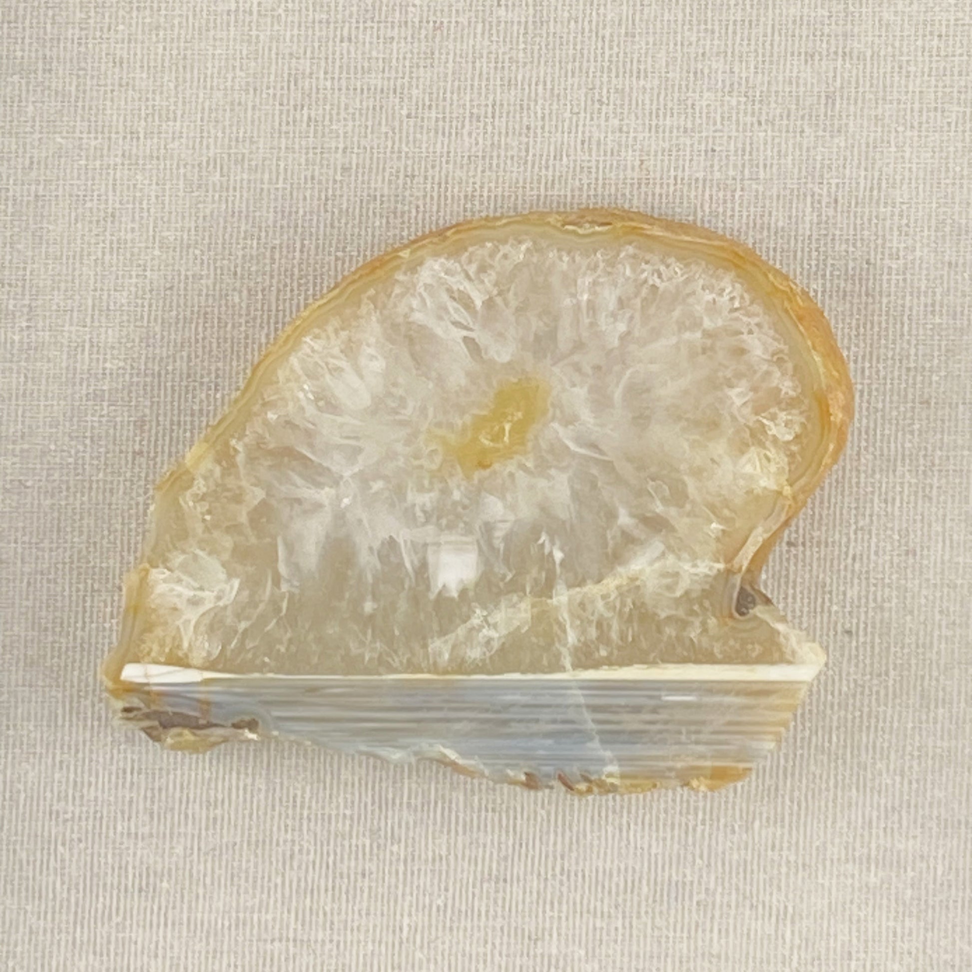 Materials: Thick yellow druzy agate slice, linen background