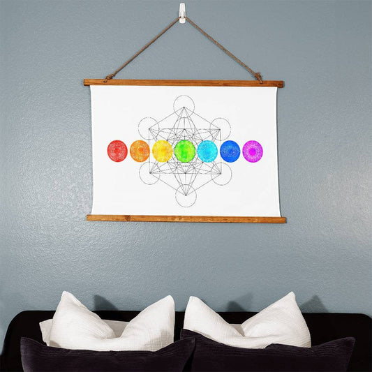 Metatron's Cube Sacred Boho Wood Framed Hanging Tapestry